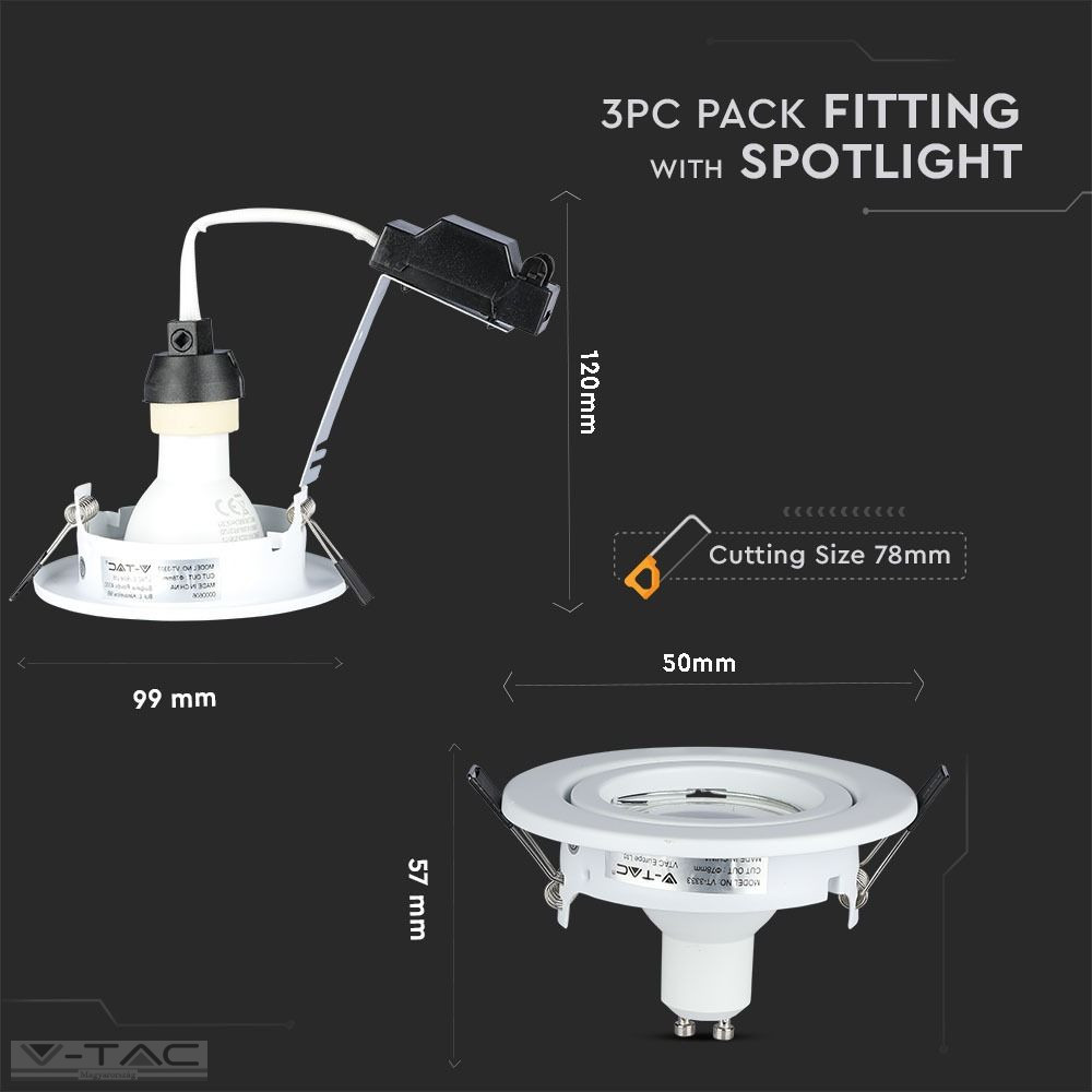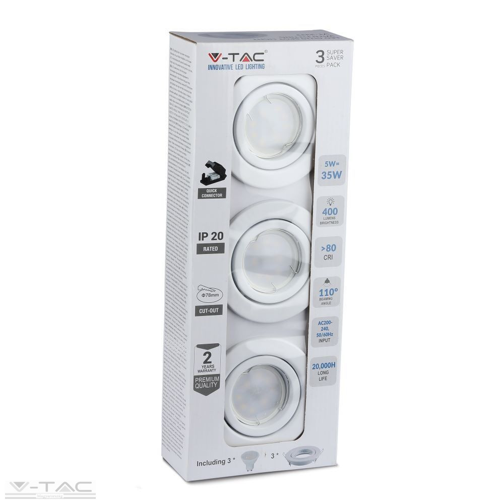 5w spotlámpa GU10 fehér kerettel és foglalattal 4000K (3db/csomag) – 8882