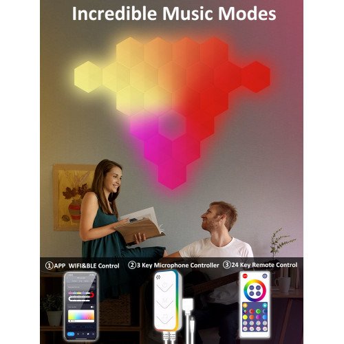 Digitális RGB HEXALED szett, 6 db-os, távirányítóval, USB, DRGB, dimmelhető, WIFI/Bluetooth, TUYA, LEDISSIMO AMBIENT TikTok LIGHT