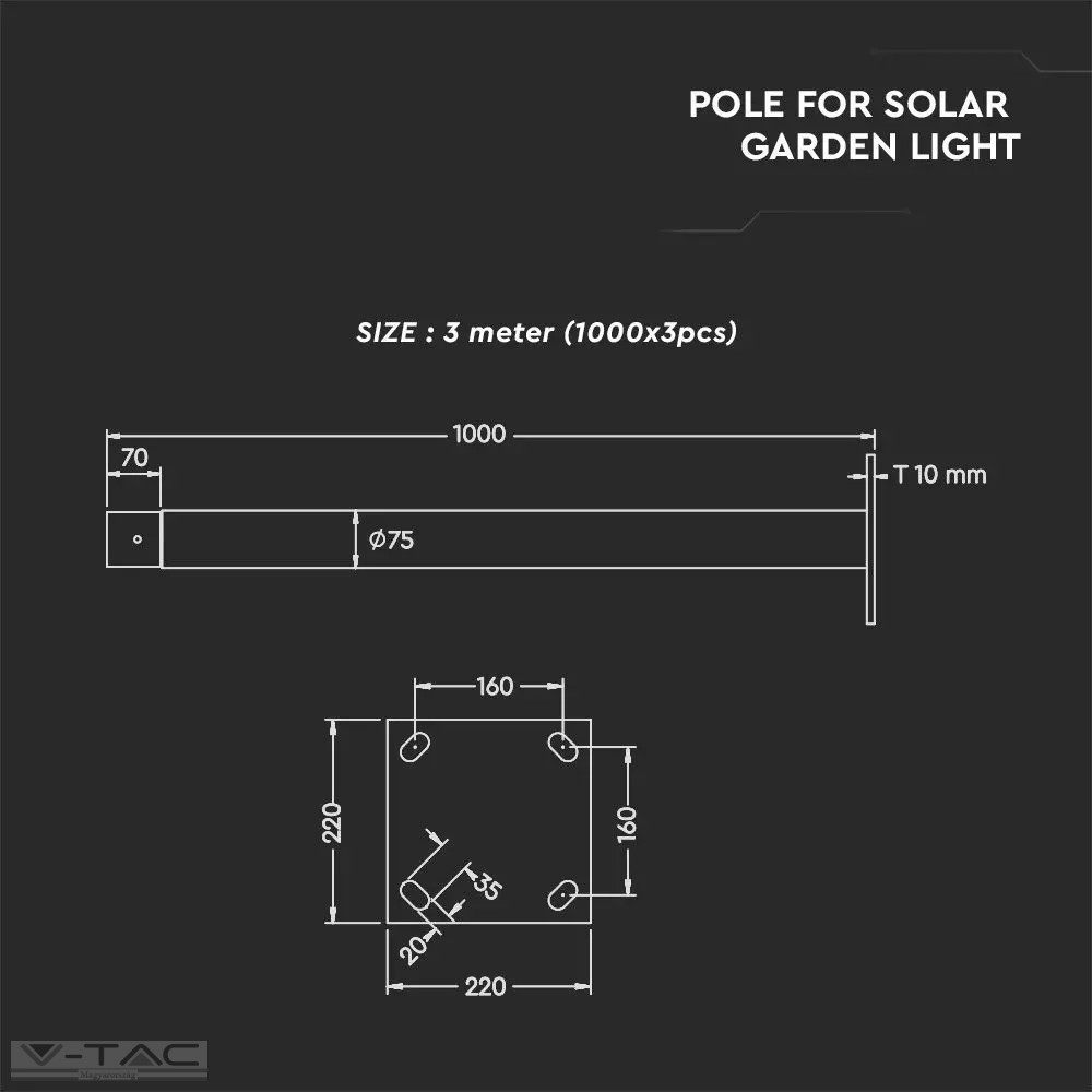 Tartó oszlop napelemes LED kerti/utcai lámpához – 11258